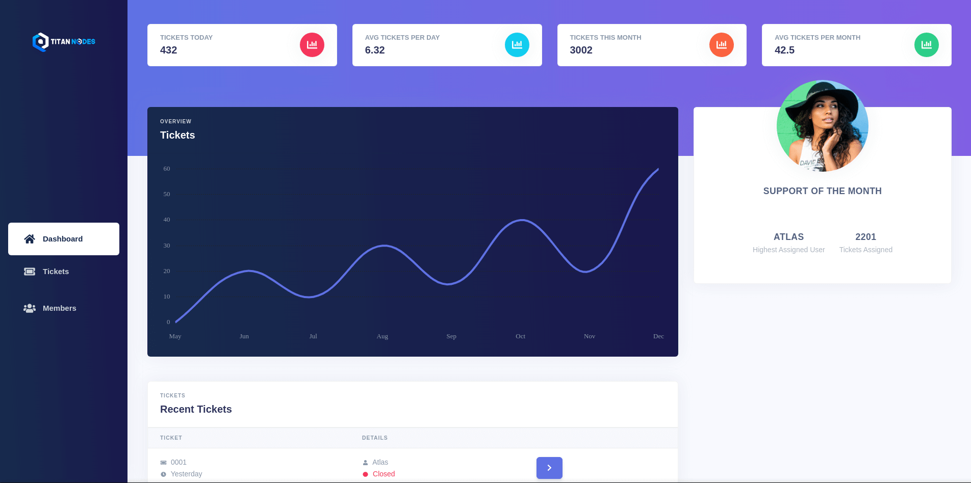 Titan nodes is a true titan in the game-hosting service industry, with over thousands of active clients and hundreds of thousands yearly impressions. My goal when assigned to their project was re-vamping their archaic ticket system into a full web panel for their support team to have a much more productive and streamlined workflow.